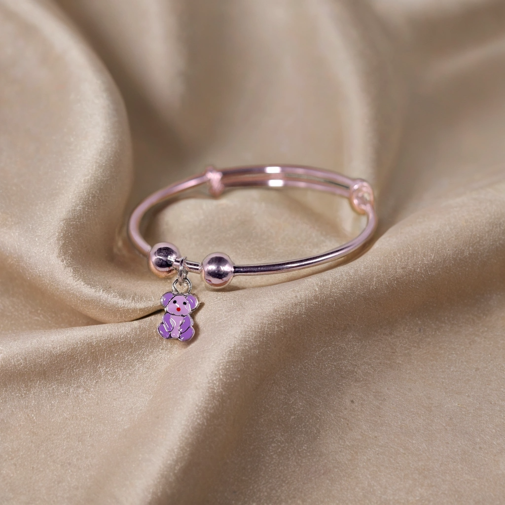 Wrap your little one’s wrist in cuteness with the Cuddle Bear Silver Kada for Kids – a charming, high-quality bangle made from pure 925 sterling silver. This adorable kada features a sweet purple teddy bear charm, perfect for adding a playful touch to your child’s everyday style.