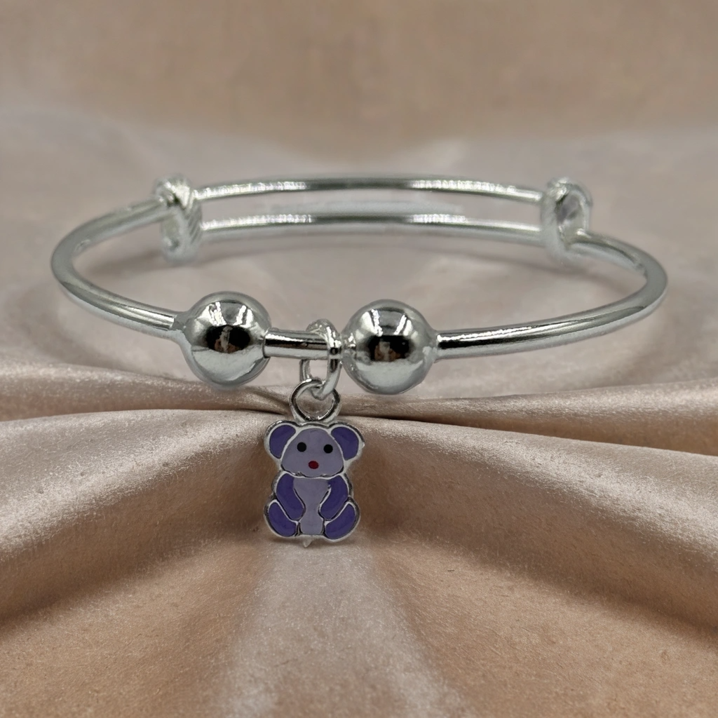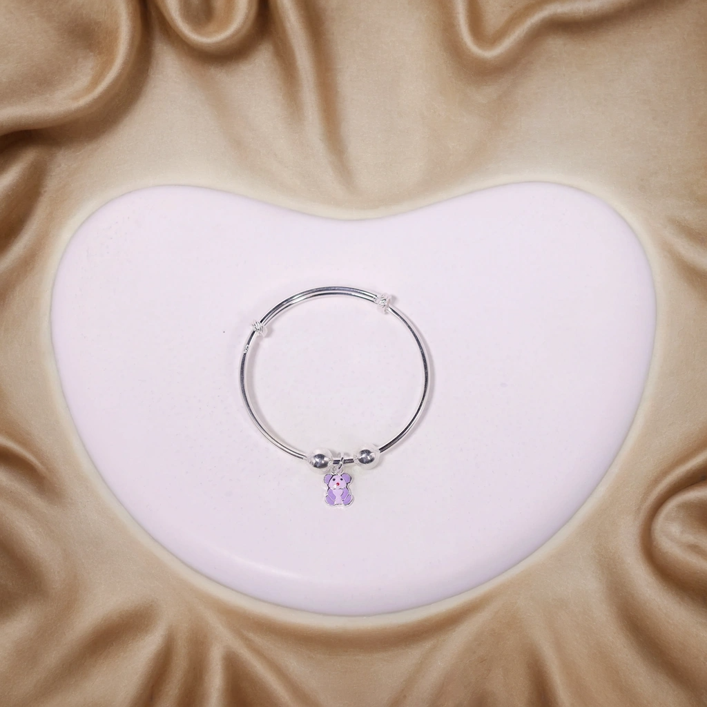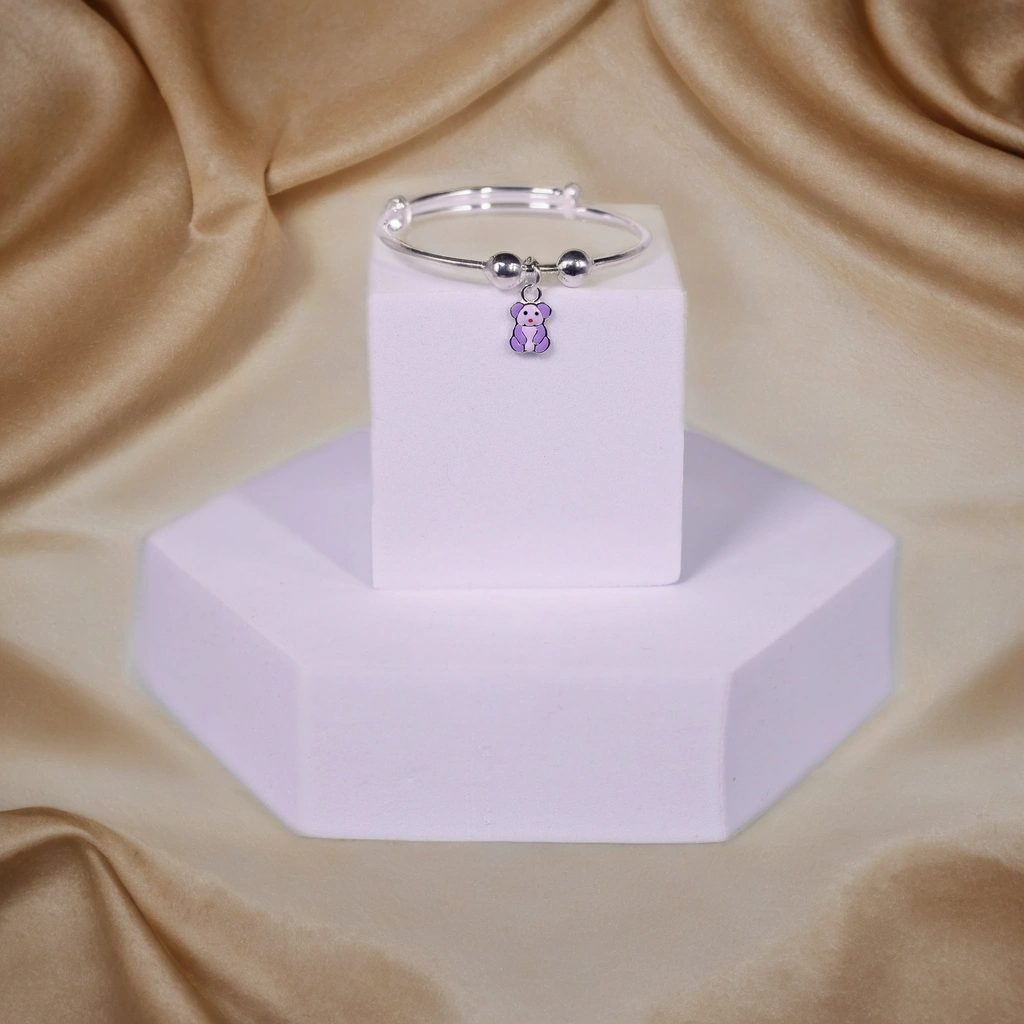 This shiny silver kada has a tiny purple teddy bear charm that loves to cuddle with you all day long! It’s comfy, cute, and made just for little hands like yours. Wear it, love it, and show it off!