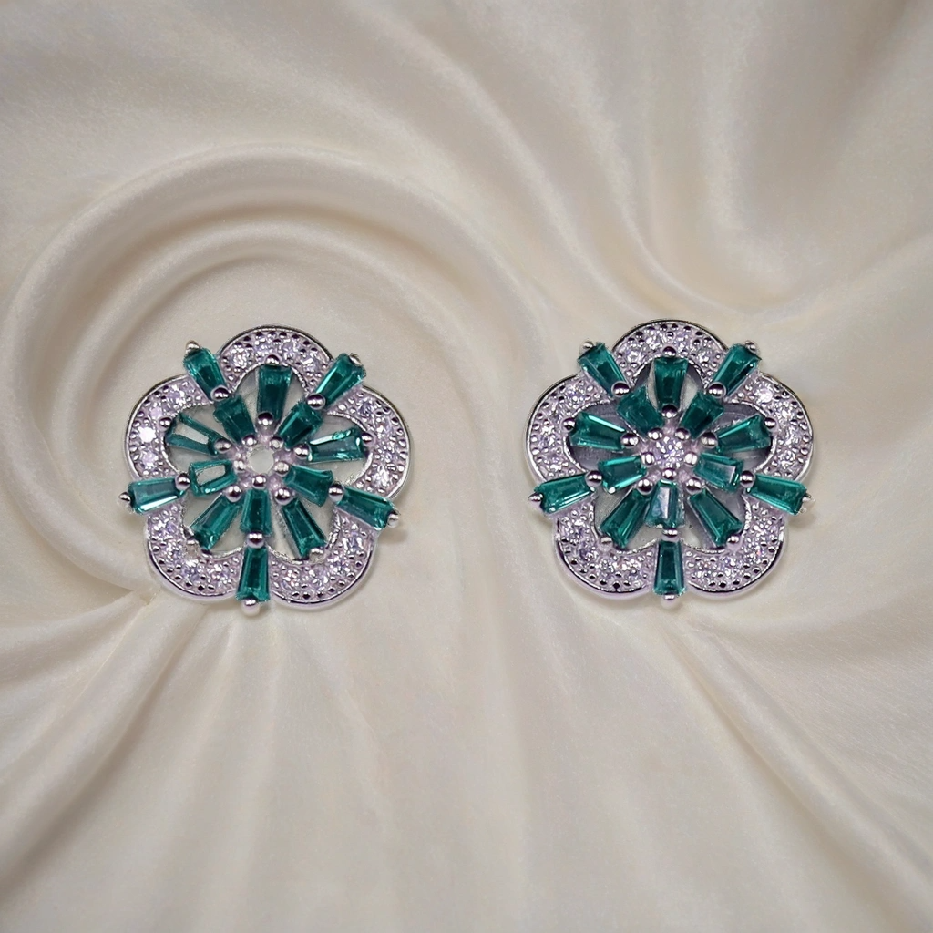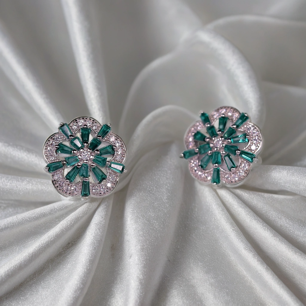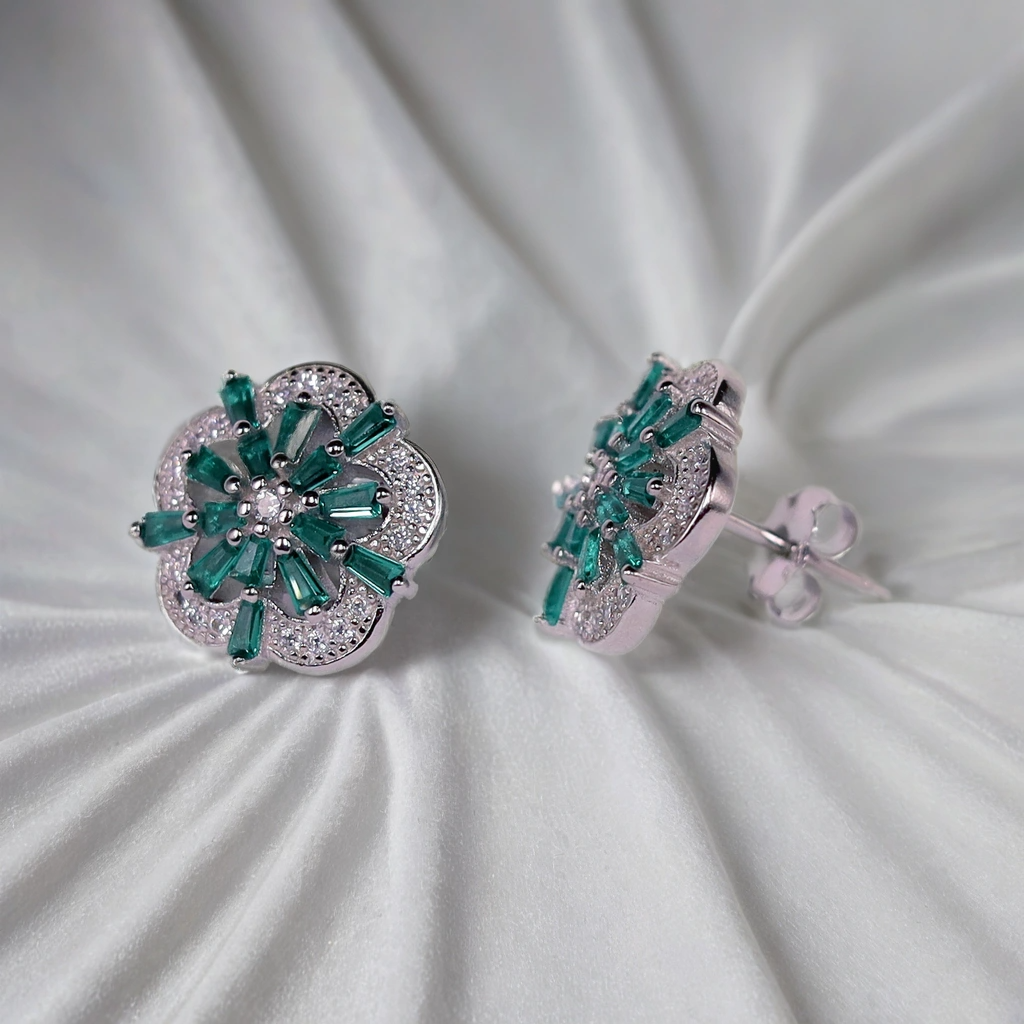 Emerald Petal Glow Earrings for Kids & Ladies – Pure 925 Silver