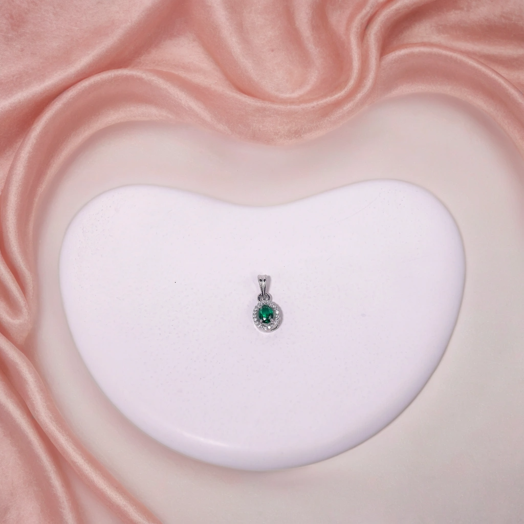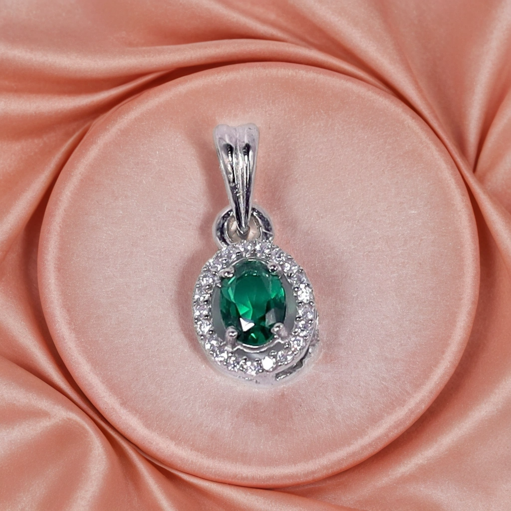 Emerald Twinkle Oval Pendant for Kids & Ladies – Pure 925 Silver