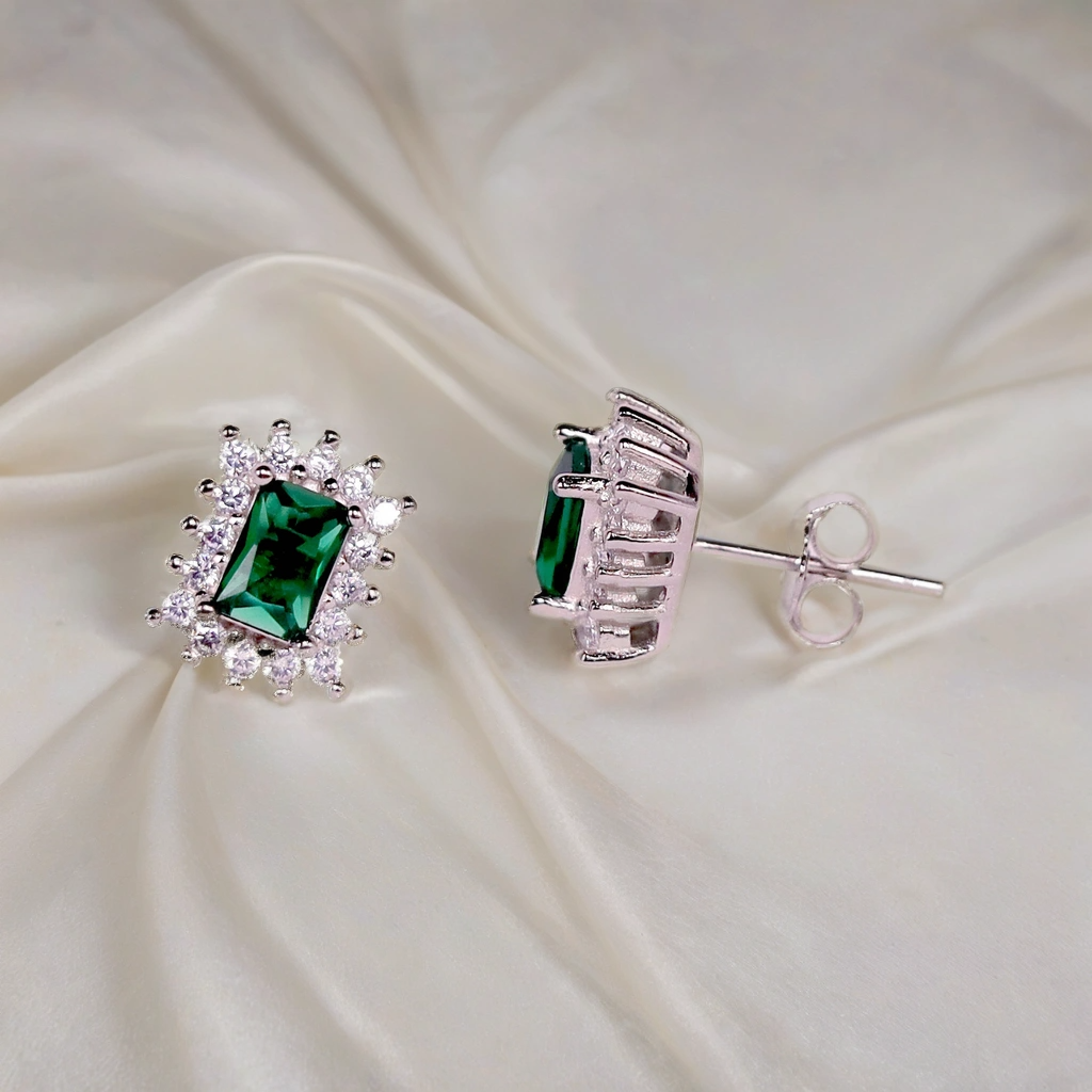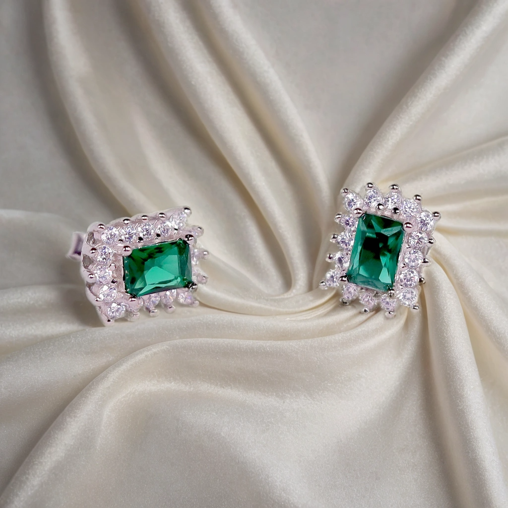 Emerald Twinkle Rectangle Earrings for Kids & Ladies – Pure 925 Silver