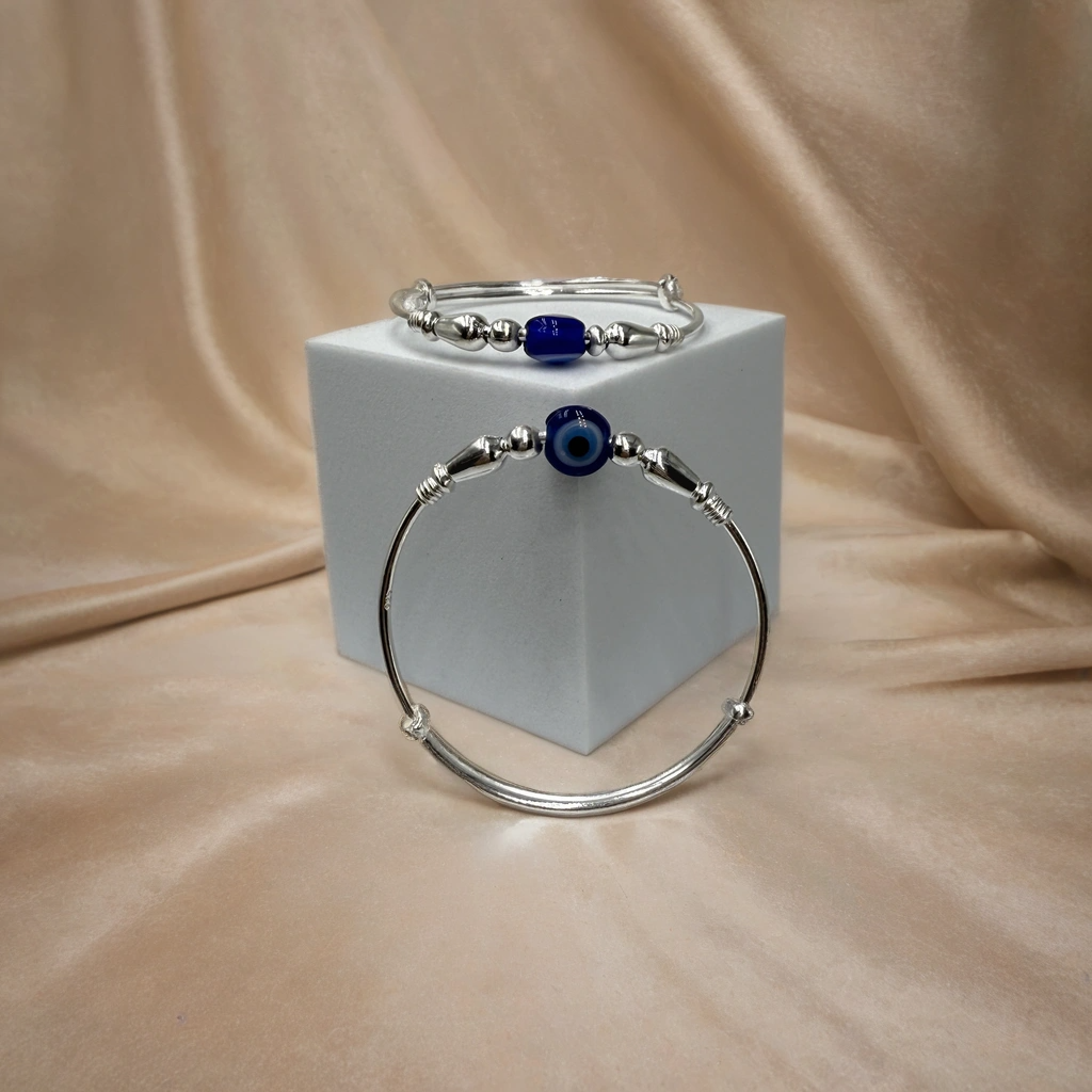 🧿💙 Spy the sparkle and stay safe! This cool silver bangle with a blue evil eye keeps you shining and protected—just like magic! 🌟🛡️