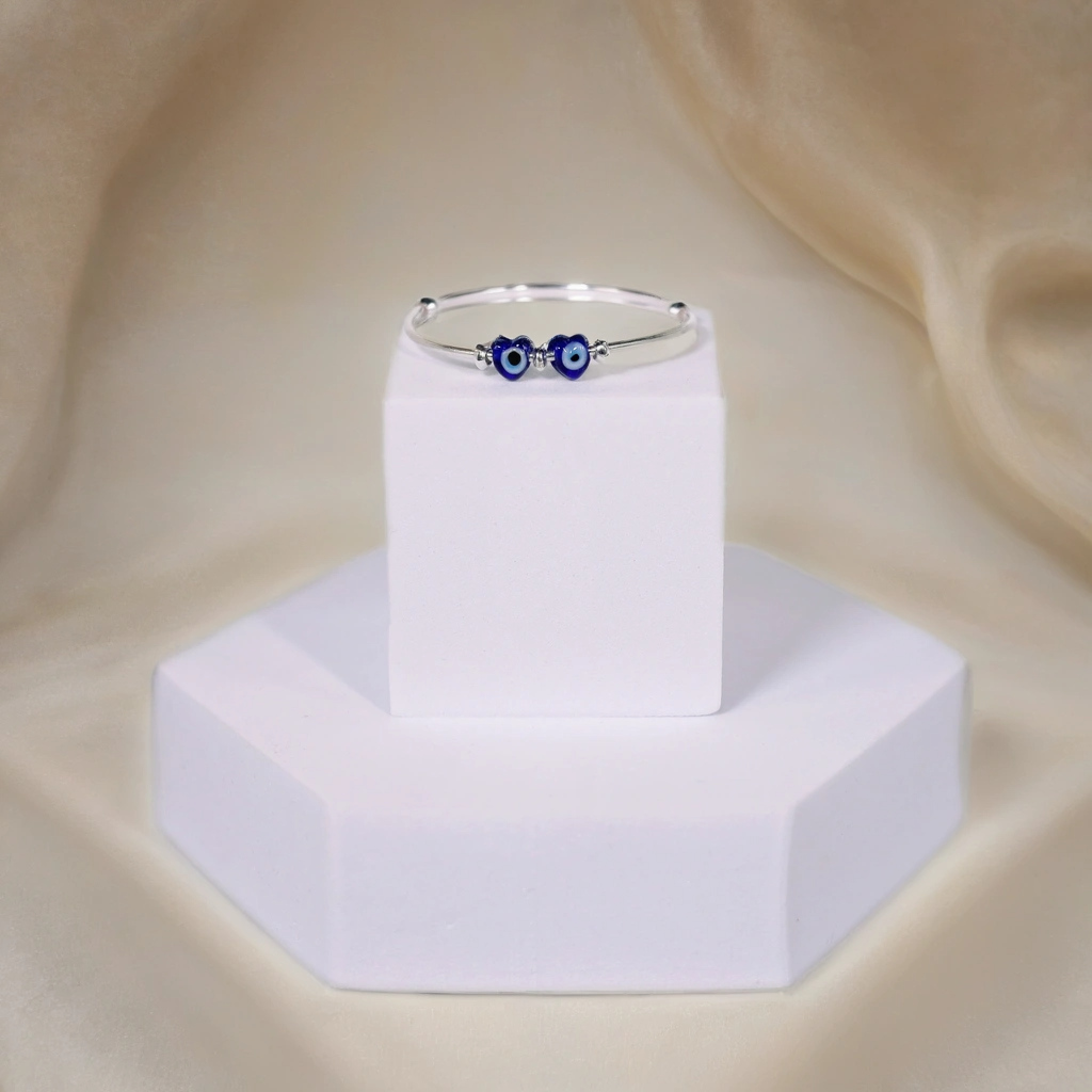 Twin Little Heart Evil Eye Silver Kada (Nazariya) for Kids (Pair-Set of Two) – Pure 925 Silver