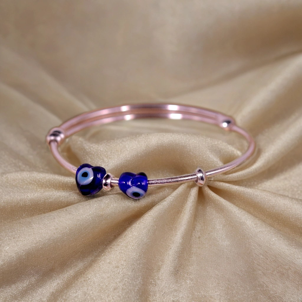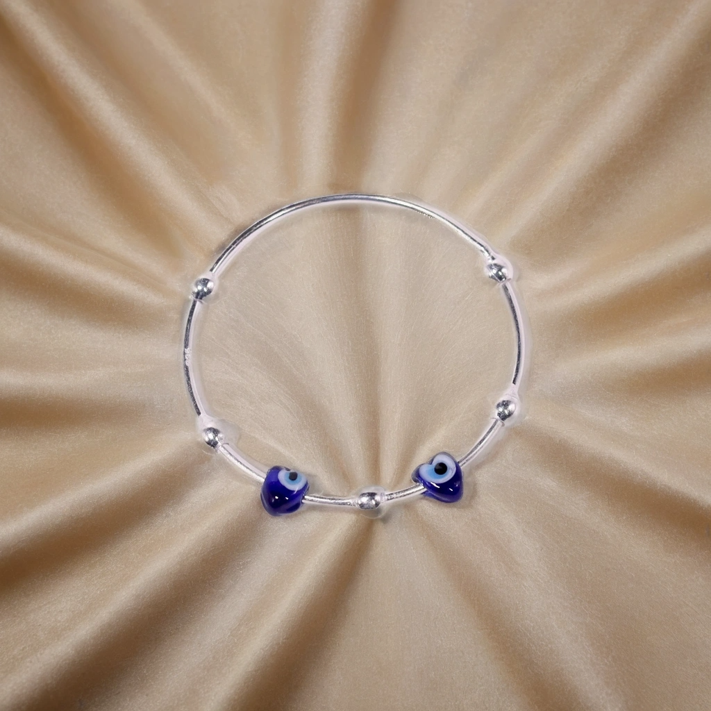 Wrap your little one in love, light, and protection with the Twin Little Heart Evil Eye Silver Kada. Carefully crafted from pure 925 sterling silver, this delicate kada features two charming blue evil eye beads—symbolizing safety, positivity, and blessings.
